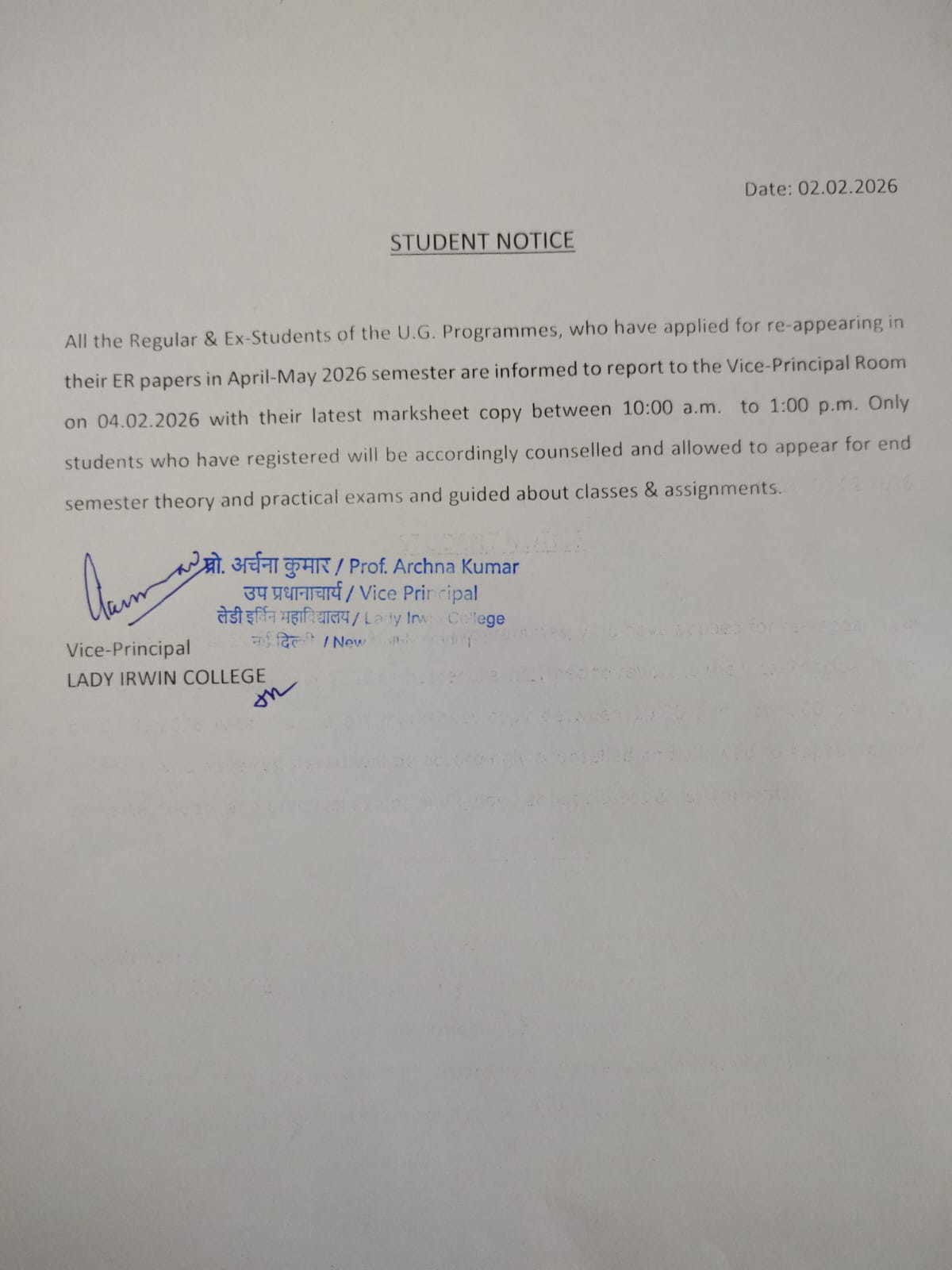 It is with immense pride and a deep sense of responsibility that I welcome you to Lady Irwin College — a pioneering institution of the University of Delhi, founded in 1932 with a singular vision: to empower women through knowledge, service, and societal leadership.