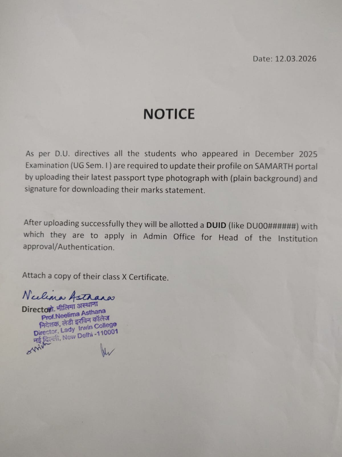 Notices from Delhi University